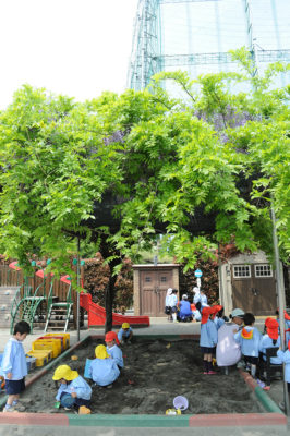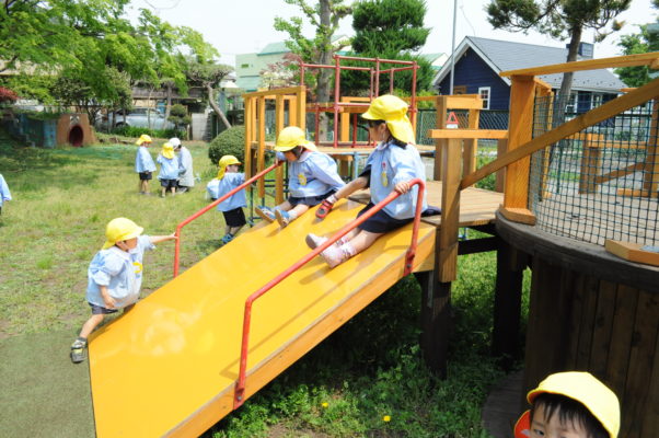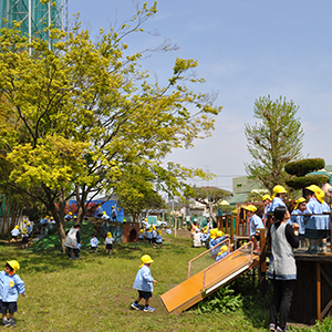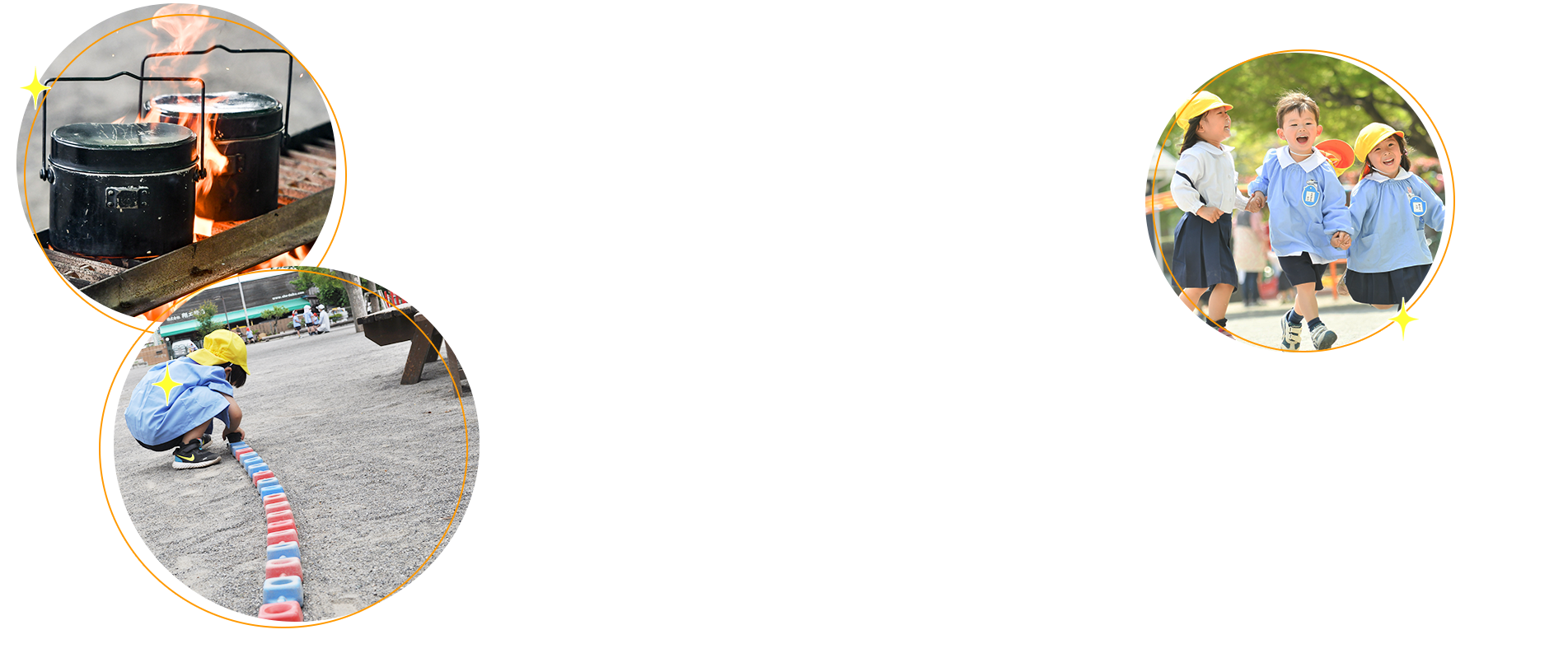 遊びを中心に保育していて、子どもたちはいつもいきいきと遊んでいます。その遊びを通して、自分で何かを発見し、自分で考えていく力を獲得しています。「まねしてみたい」「なんでもやってみたい」「いろいろなことをしりたい」と好奇心や探求心を満たすように、積極的に自分から働きかけています。